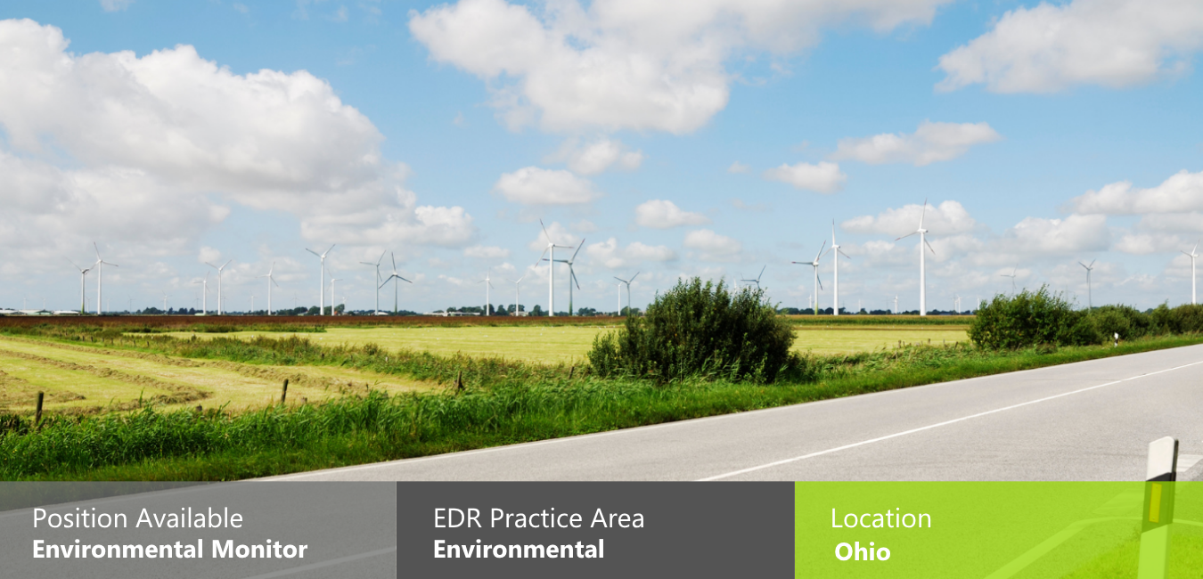 EDR is seeking a versatile, team-oriented Environmental Monitor to join our Environmental Services group, willing to work on large scale energy project-based assignments mainly in Ohio and occasionally in New York State. Qualified individuals will have an undergraduate degree related to environmental science, natural resource management/forestry, agricultural engineering, and/or construction management.